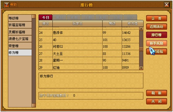 灵樨祈福榜: 根据所有服务器每天打开灵樨祈福仙匣的数量进行排序,在当天的2