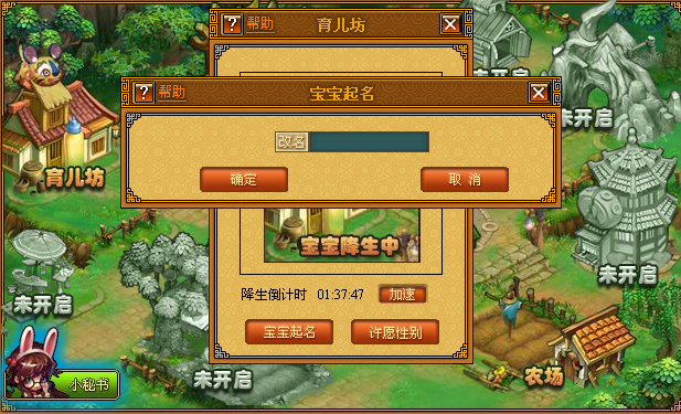 2. 宝宝的选择: 开启育儿坊之后,宝宝需要一定时间才可以降临。玩家可以在此期间给宝宝起名字,或者“该科技”选择宝宝性别。宝宝为夫妻共同拥有,当然只有夫妻同时在线时宝宝系统才可进行操作。